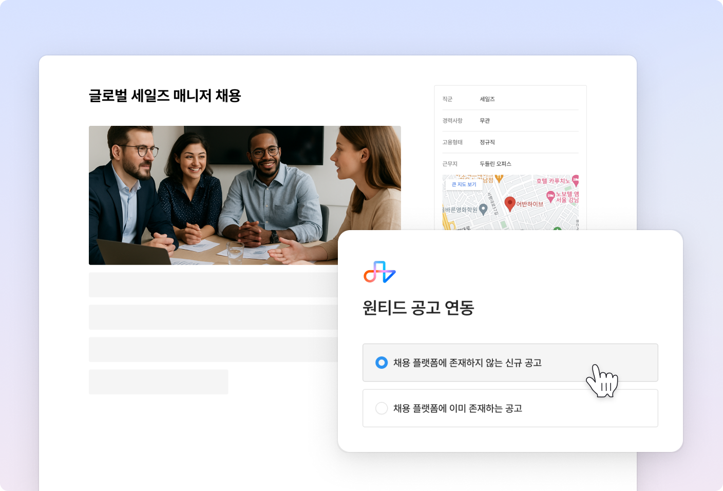 원티드에 등록된 기존 공고도 그리팅 공고와 연동할 수 있어요.