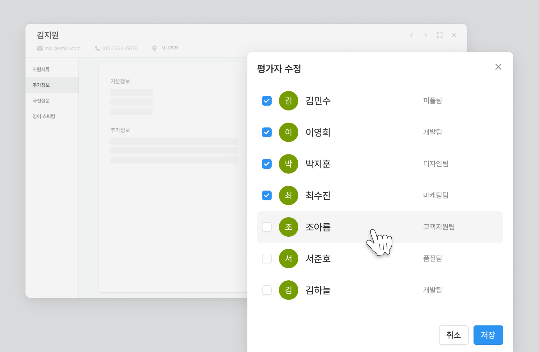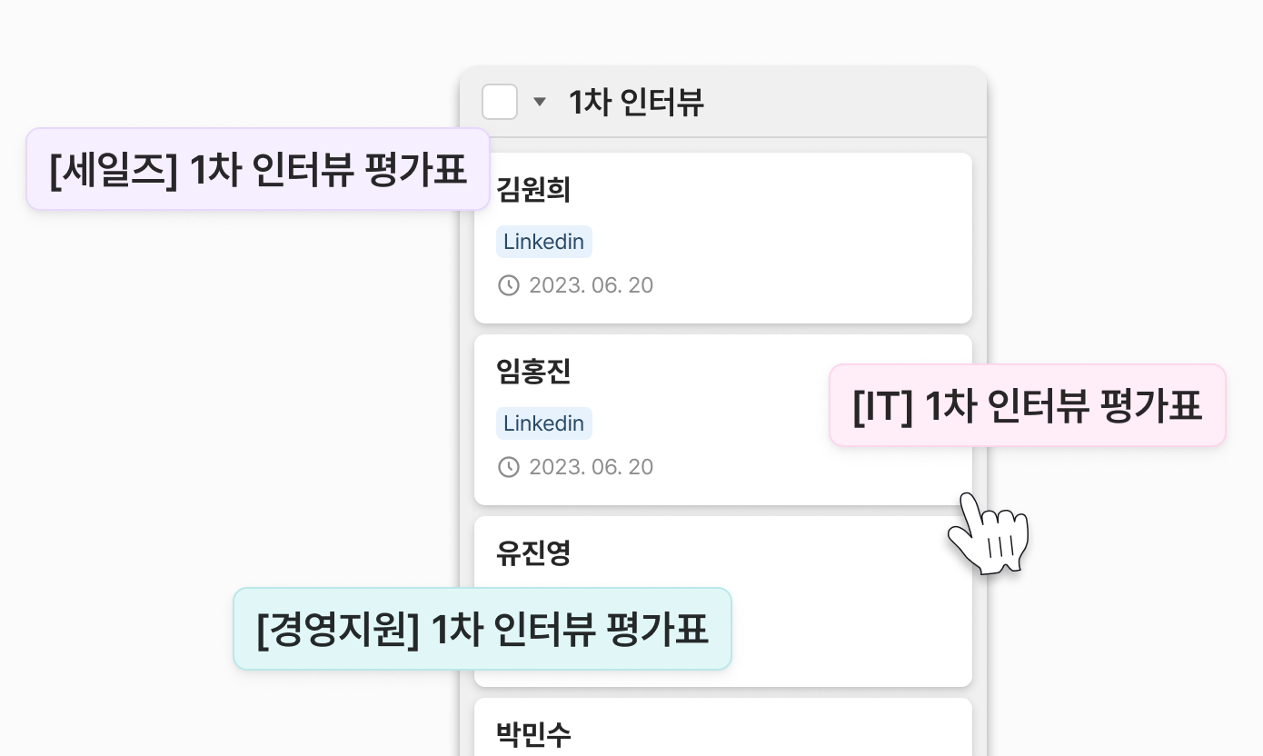 평가자 접근 범위 설정을 통해, 같은 채용 단계 내 지원자들 대상으로 평가자들이 접근할 수 있는 지원자의 범위를 제한할 수 있어요.