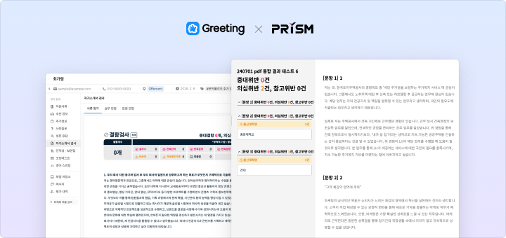 프리즘 계약 안내 및 연동 코드 발급 문의는 무하유 담당자에게 문의해주세요.