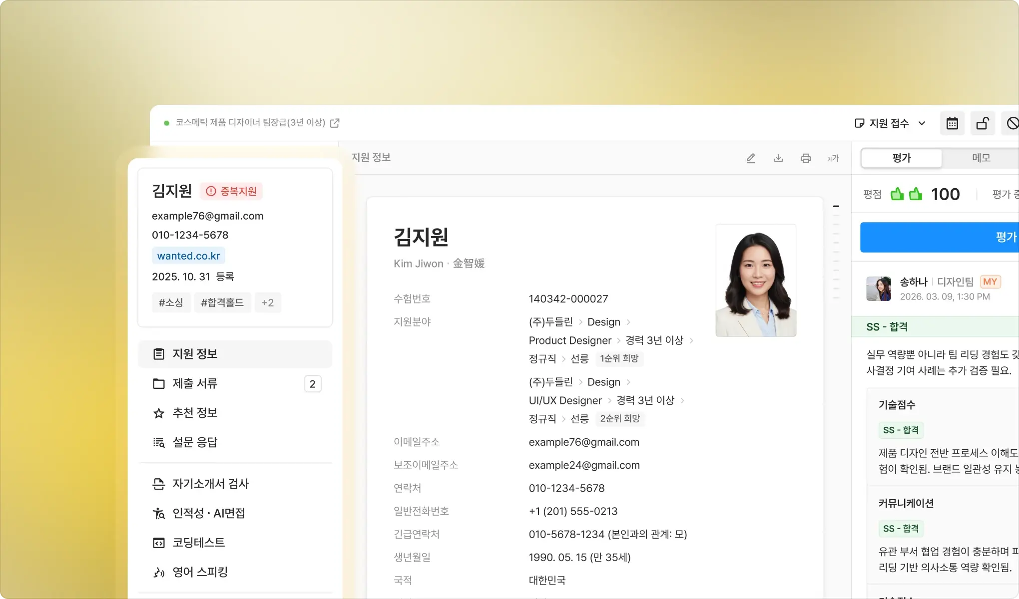 지원자 검토의 몰입도를 높이는 새로운 UI를 제공합니다.