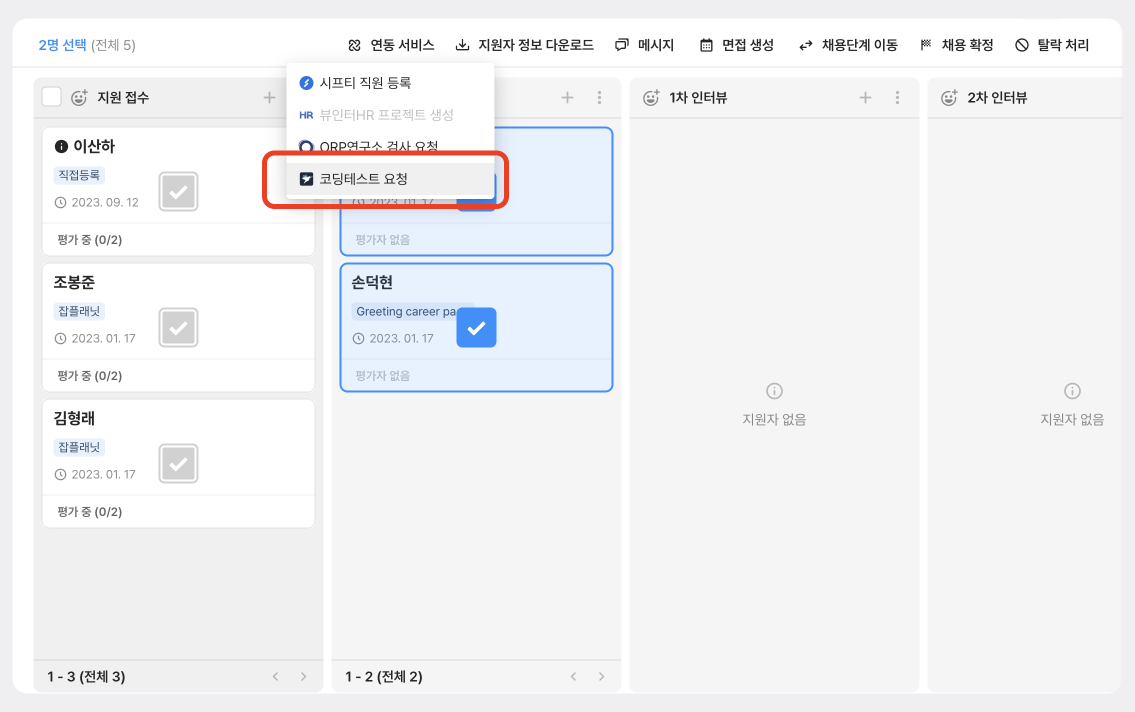 지원자에게 코딩 테스트 검사를 요청할 수 있습니다