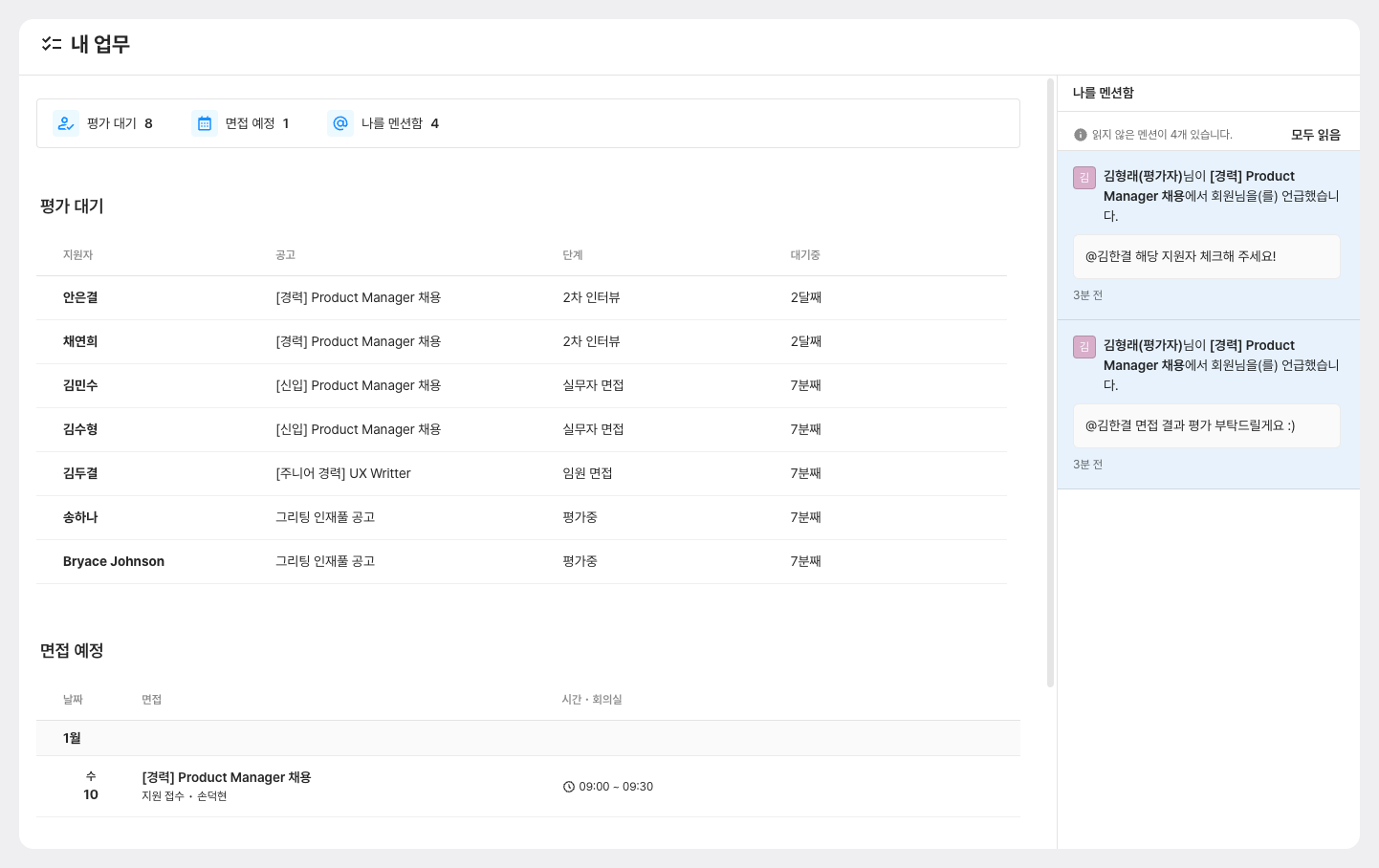 채용담당자를 위한 내 업무 페이지 또한 조만간 업데이트될 예정입니다