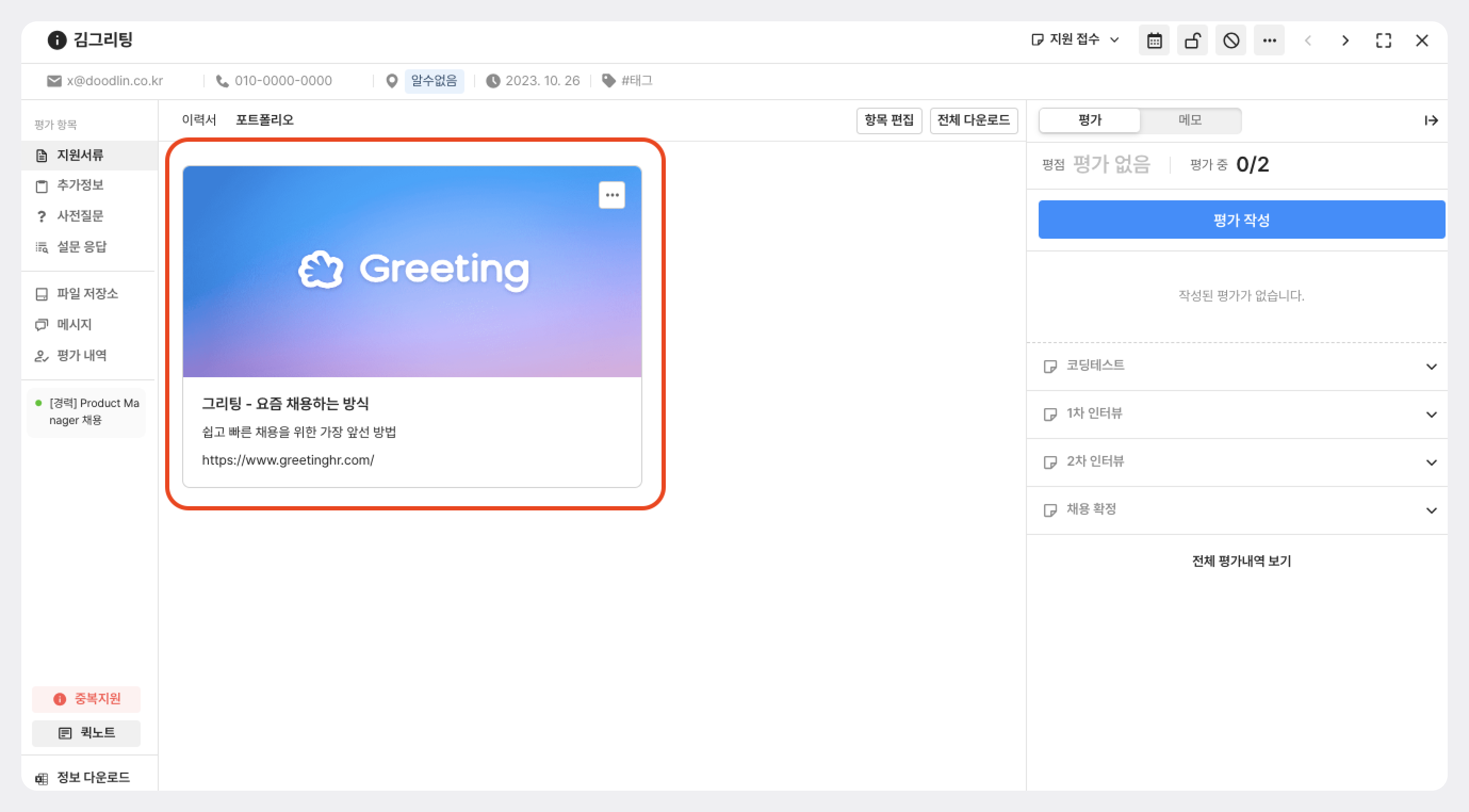 링크 형태로 제출한 경우, 지원자 상세페이지에서 아래와 같이 지원 서류를 확인할 수 있습니다