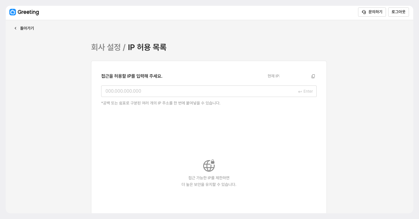 그리팅은 고객사의 소중한 데이터를 보호하기 위해 다양한 노력을 합니다. 이번에는 보안이 중요하여 그리팅에 대한 접근 제어가 필요한 고객사를 위해 IP 주소 접근 제어 기능을 개발했습니다. 보안이 보다 중요한 대기업, 중견기업에서 유용한 기능입니다.