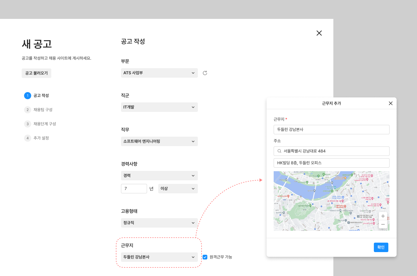 공고의 근무지(주소/상세주소)에 '근무지 이름' 항목이 추가됩니다.